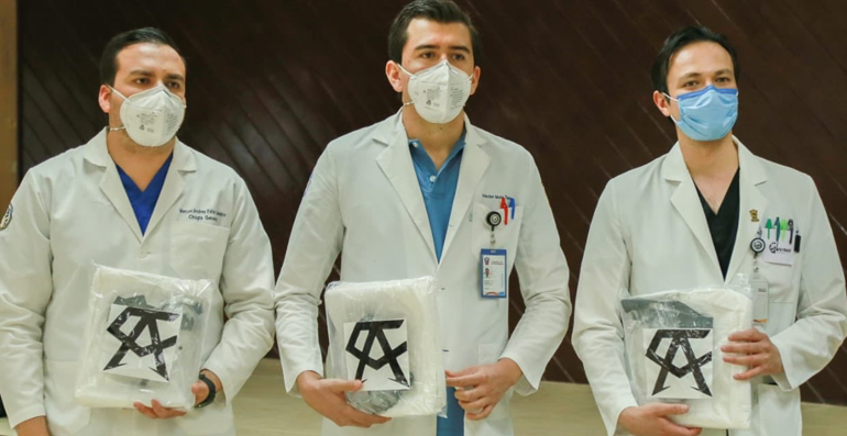 En esta ocasión Saúl donó 950 kits de protección personal para trabajadores de la salud del Hospital Civil de Guadalajara que atienden a la ciudadanía.