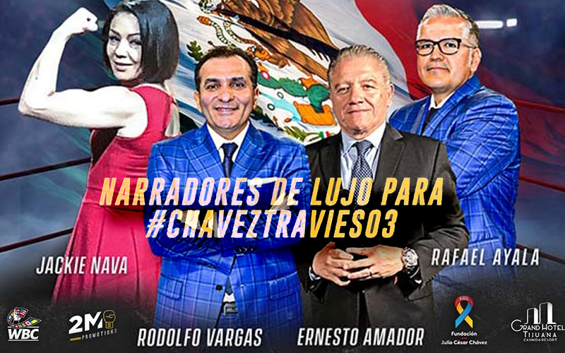 Un equipo de profesionales del periodismo deportivo, especialistas en el análisis y la crónica del boxeo, será el que se haga cargo de la transmisión de la velada boxística del próximo viernes 25 desde el Grand Hotel Tijuana, encabezada por la pelea de exhibición entre las leyendas del boxeo mexicano, Julio César Chávez y Jorge “Travieso” Arce.