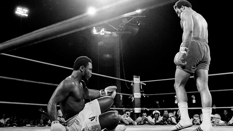 Apodada Sunshine Showdown, la pelea en la que George Foreman derribó a Joe Frazier seis veces, arrebatándole el título en Kingston Town, Jamaica, fue una pelea de un sólo lado que duró menos de dos rounds tempestuosos. Un poco antes de los dos minutos en el primer round, un gancho de derecha masivo derribó a Joe, luego otro lo puso de rodillas y luego una combinación de izquierda y derecha lo regresó a la lona.