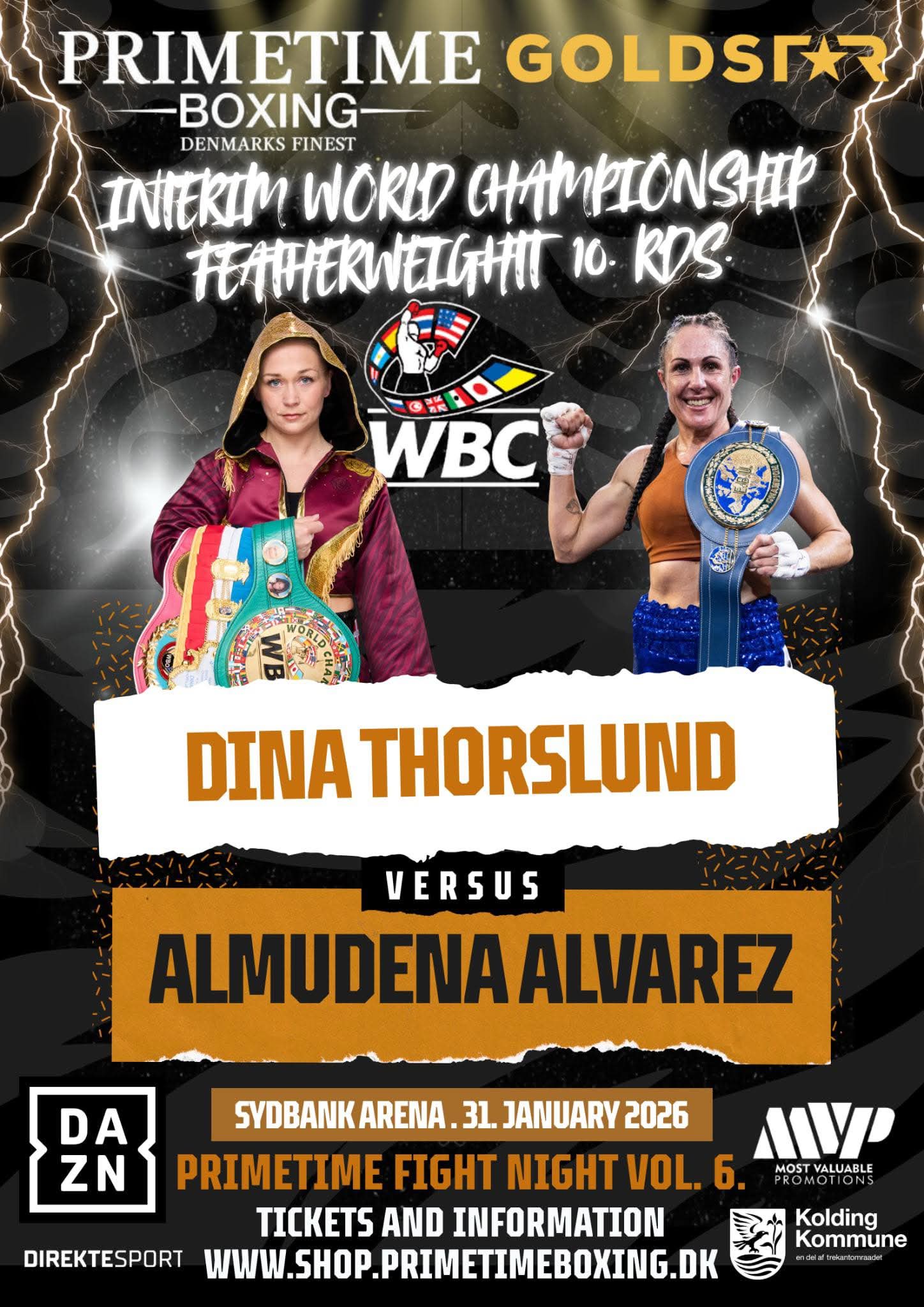 La cartelera internacional del próximo 31 de enero en Kolding ha dado un giro inesperado. La española Almudena Álvarez será finalmente quien se enfrente a la multicampeona Dina Thorslund por el título Interino Pluma del WBC, tras la salida de la rival originalmente programada.