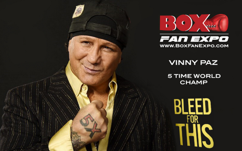 El cinco veces campeón del mundo Vinny Paz confirmó que se presentará y celebrará un ‘Meet & Greet’ con sus fanáticos en ‘Las Vegas Convention Center’ para la 5ta edición anual de ‘Box Fan Expo’ el sábado, 4 de mayo de 2019 de 10:00am a 5:00pm, durante el fin de semana de ‘Cinco De Mayo’. La expo del boxeo también coincidirá con la pelea tan esperada entre ‘Canelo’ Álvarez y Danny Jacobs, que tendrá lugar más tarde esa noche en el estadio T-Mobile.