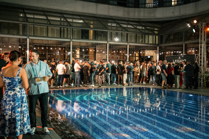 En la primera hora, el lugar estaba a reventar. Tanto, que la única forma de navegar entre la multitud era desafiar al cloro, bordeando los límites de la piscina azul, arriesgándose a un chapuzón improvisado al anochecer.