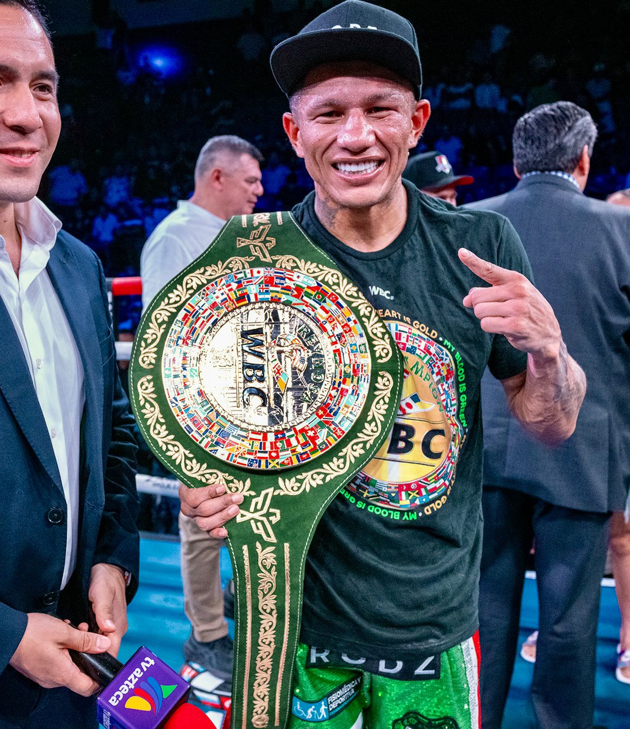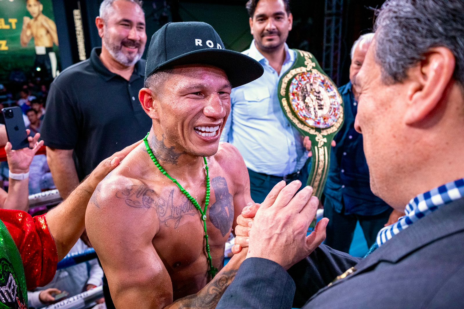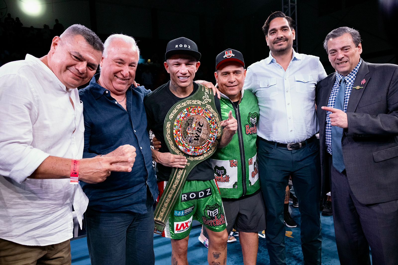 Jubiloso, Miguel dijo: “Fue duro, pero lo fui desgastando y lo quebré. En el séptimo asalto fue cuando apliqué una presión severa con tantos golpes y estoy encantado con este cinturón. Ahora quiero pelear por el cinturón ligero Verde y Oro del WBC y traerlo a casa”.
