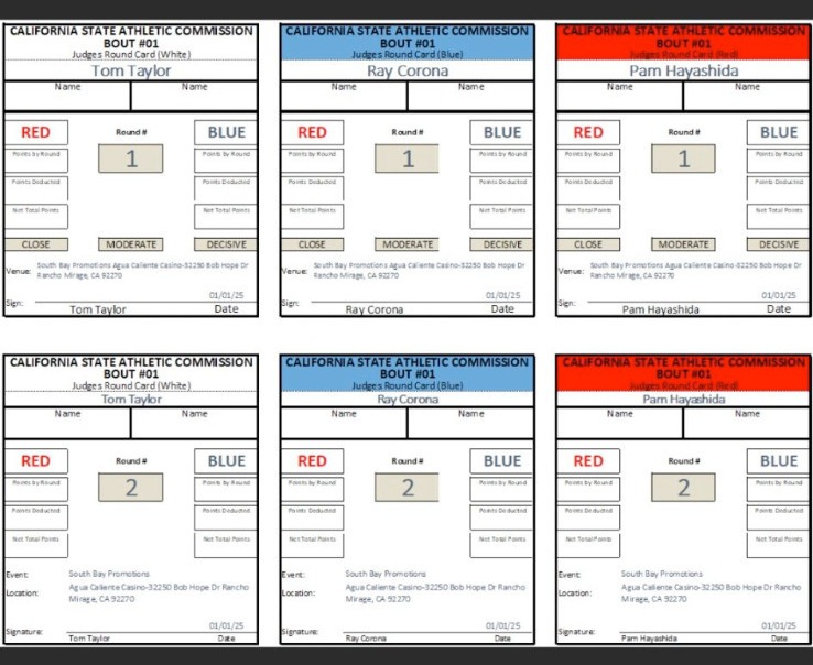 Las tarjetas de puntuación individuales tienen 4 casillas debajo de las casillas de puntos en las que el juez selecciona la que refleja cuán amplio fue el margen del asalto.