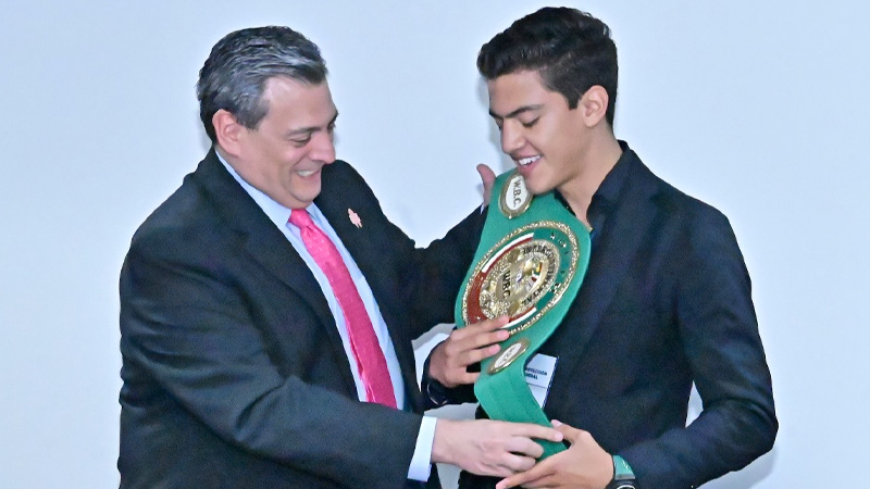 The 20-year-old received from the hands of WBC President Mauricio Sulaimán the belt that endorses, lauds and celebrates him as the WBC Intercontinental Youth Champion.