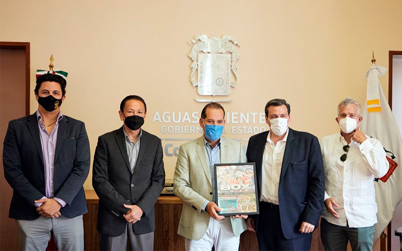 Mauricio Sulaimán, Fernando Barbosa and Gerardo Saldívar were received by the Governor of Aguascalientes, Martin Orozco Sandoval and the head of state sports Manuel Aceves Rubio.