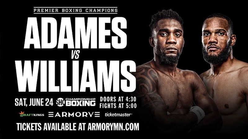 WBC interim middleweight champion Carlos Adames will defend his title against Julian Williams in the main event of a card taking place June 24 at The Armory in Minneapolis.