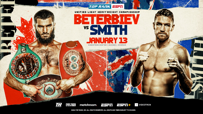 After recent dental surgery forced Beterbiev to postpone his Aug. 19 title defense against former world champion Callum Smith, the two will now meet Saturday, Jan. 13 at Videotron Centre in Quebec City, Canada.