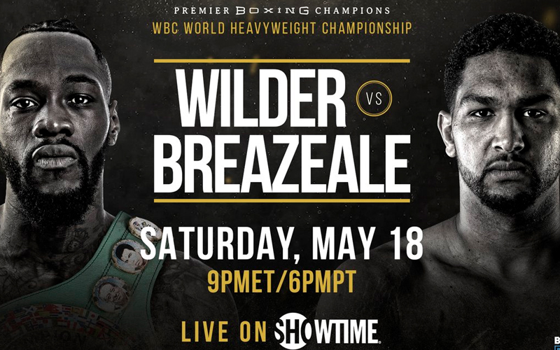 World Boxing Council heavyweight champion Deontay Wilder (20-1, 18 KO’s) will defend his crown against Dominic Breazeale (20-1, 18 KO’s) on May 18 at the Barclays Center in Brooklyn.