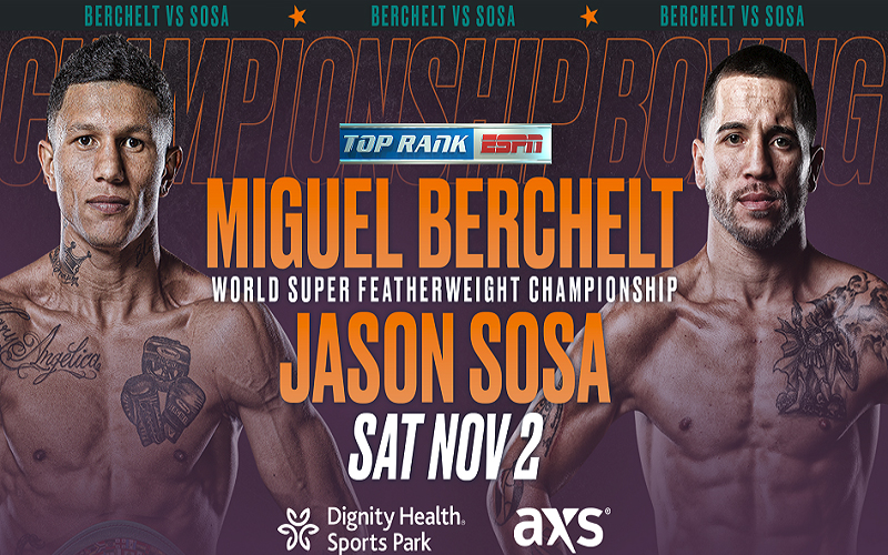 World Boxing Council super featherweight champion Miguel “Alacrán” Berchelt (36-1 / 32 KO), will defend his crown on November 2, in Carson, California, against the North American- Puerto Rican Jason Sosa (23- 3-4 / 16 KO).