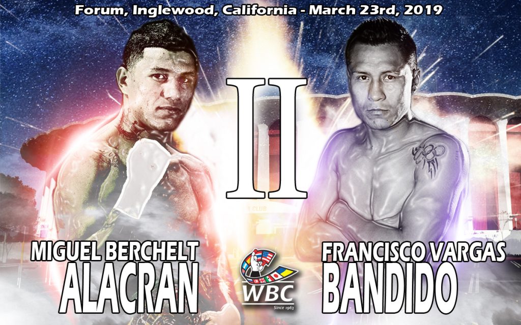 The World Boxing Council super-featherweight champion, Miguel “Alacran” Berchelt (35-1, 31 knockouts), will grant a rematch to his compatriot Francisco “Bandido” Vargas (25-1-2, 18 knockouts), on March 23 at the Inglewood Forum in California.