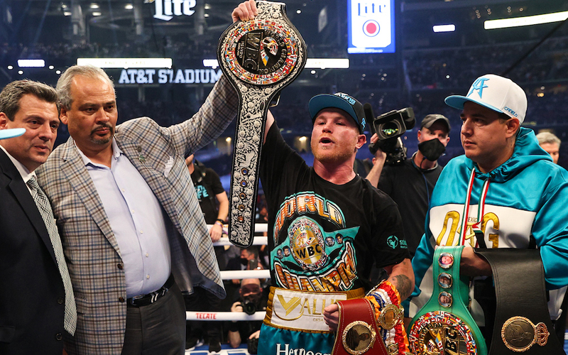 The World Boxing Council presented Canelo with the Mestizo belt as a trophy, to commemorate May 5, after he pulled on a WBC black t shirt handed to him by President Mauricio Sulaiman.