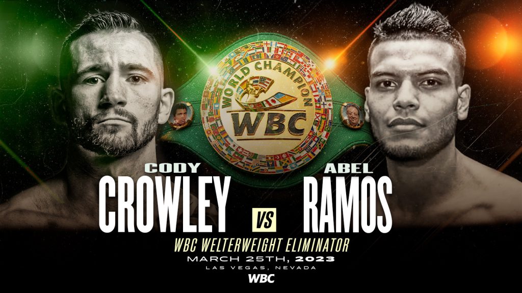 Standout welterweight contenders Cody Crowley (21-0-0, 9 Ko’s) and Abel Ramos (27-5-2, 21 Ko’s) will clash on Saturday, March 25 in a 147-pound elimination bout endorsed by the WBC.