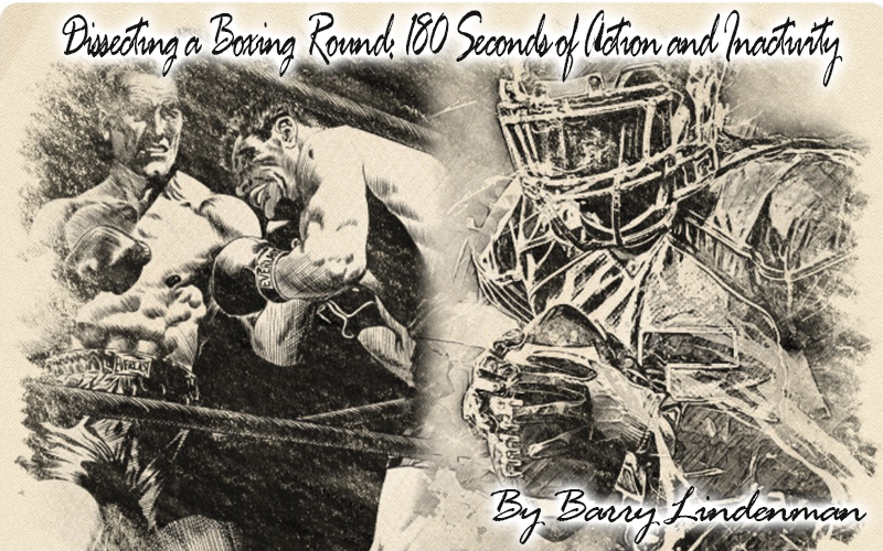 The average National Football League (NFL) game lasts 3 hours and 12 minutes. The average length of a play in the NFL is only 4 seconds. From the time the ball is snapped to the time the referee blows the whistle to end the play is only 4 seconds! That means that on average, the total time the ball is in play during an NFL game is 11 minutes. The rest of the 3 hours of an NFL game is taken up by huddles, replays, commercials, halftime shows, penalties, etc. The same can be said of a boxing round. Most people think of a round as being a three-minute block of time. I choose to view a round a little differently. In addition to lasting three minutes, a round can also be viewed as lasting 180 seconds.