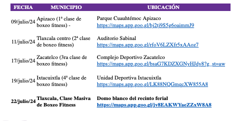 We share the calendar of Boxing Fitness activities in Tlaxcala:
