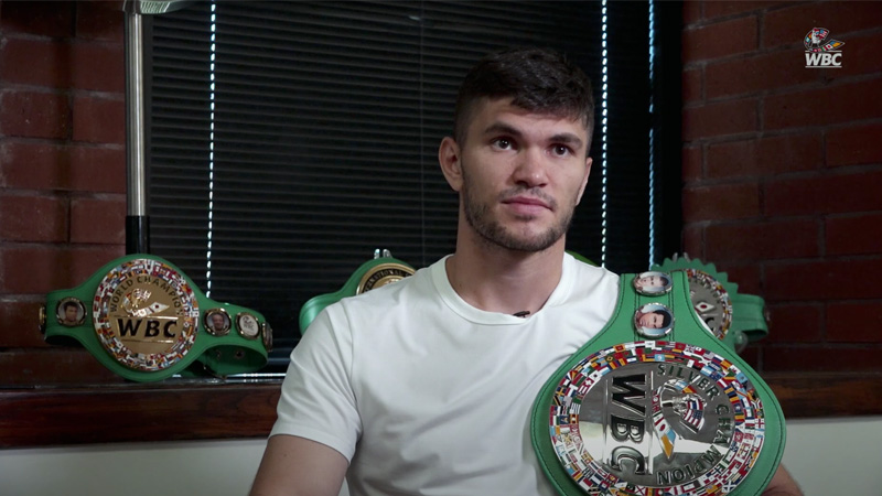 Then he enthuses: “Gennady is my Promoter and also like my older brother. I`m so happy that I`m with him. The other day we talked for an hour and a half and my future is the Green and Gold Belt! I`m so happy as this is my first big belt. Now… on to the next step which is the Green and Gold Belt.”