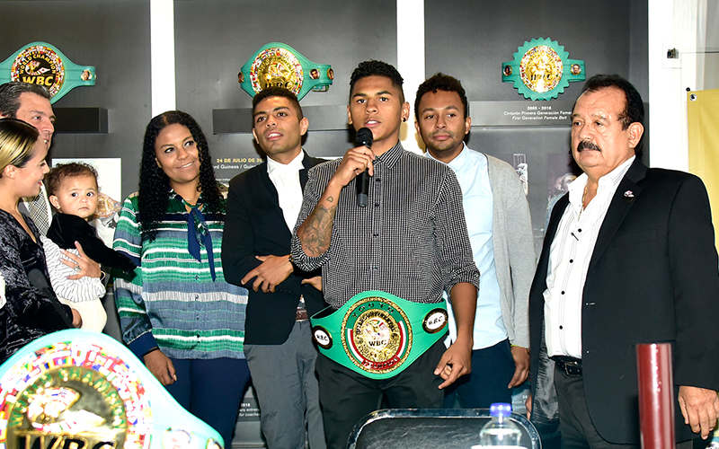 Angel Napoles, who`s the grandson of ring legend Jose “Mantequilla” Napoles, has been presented with the WBC Youth Intercontinental Lightweight Belt, which he won by TKO in the third round.