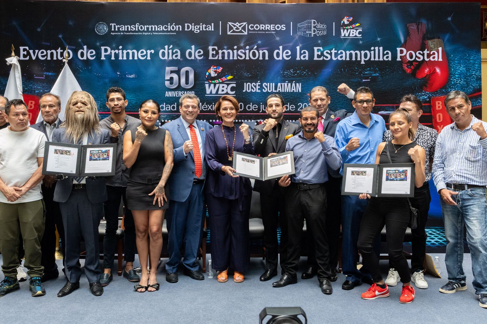 The Correos de México Postage Stamp First Day of Issue Event was held in conjunction with the WBC at the Palacio de Postal in Mexico City. This year, José Sulaimán, President for Life of the World Boxing Council, would have celebrated his 50th anniversary in office, and to celebrate, Correos de México issued five special stamps commemorating this historic event.