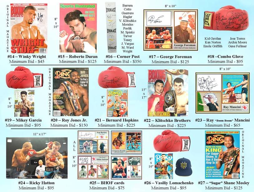 ATTN: BOXING FANS!! The Boxing Hall of Fame is holding a fund-raiser auction. This is your chance to support the Hall and win a great boxing souvenir.