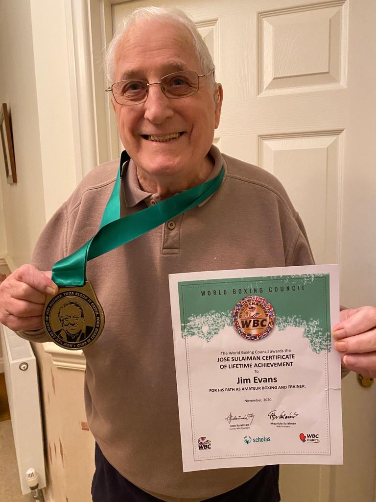 Jim Evans who has devoted his life to Boxing as an outstanding amateur boxer, Coach, Promoter and Manager has been honored with this rare, but so well deserved double award by the World Boxing Council.