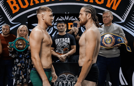 This time, Zhuk returned with a renewed focus. His opponent, Ramazan Muslimov, remained unbeaten and came in with an impressive knockout ratio — 5 of his 6 wins were by stoppage. At weigh-in, both fighters came in within the Cruiserweight limit: Oleksii Zhuk — 90.1 kg / 198.5 lbs, Ramazan Muslimov — 90.5 kg / 199.5 lbs