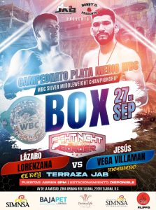 On Saturday, September 27, at Terraza JAB San Ramón in the Easy Park parking lot in Tijuana, Baja California, undefeated Lázaro “El King” Lorenzana will face Jesús “The Engineer” Vega Villaman for the WBC Silver Super Middleweight title.