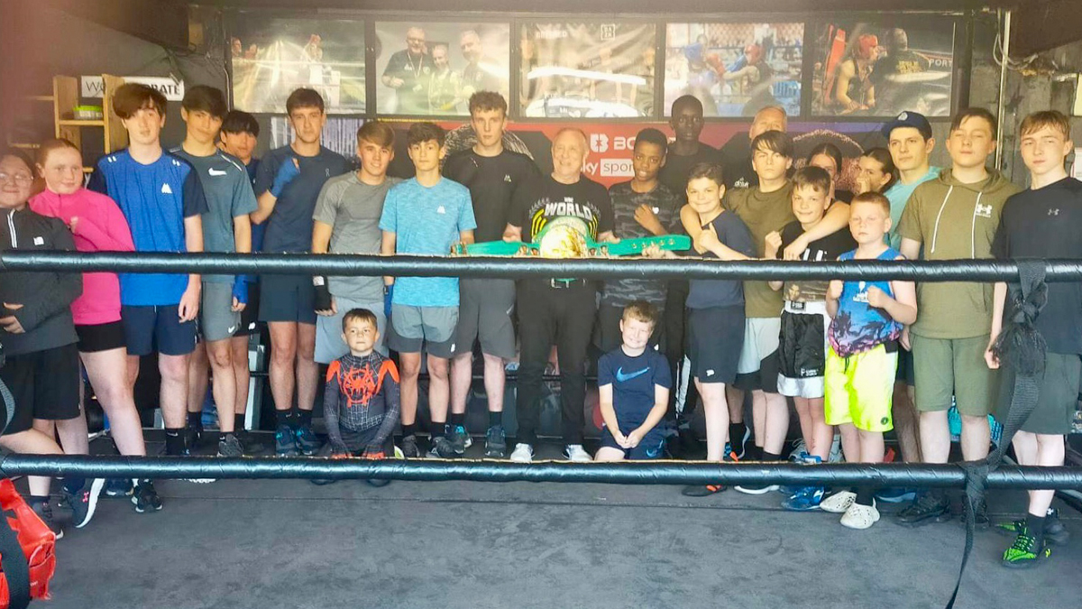 John H came to the boxing gym at the invitation of WBC referee Mark Lyson who also helps coach young boxers at Anfield abc, along with Alan, head coach Paul Cox, his daughter Sophie Cox, and Connor Parr, in the fundamentals of boxing, and teaches them to be the best they can be.