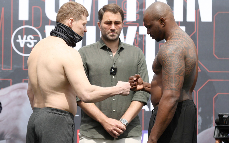 Both fighters looked confident at the official weigh-in on Friday. Povetkin was 228.25 pounds and Whyte was heavier at 247.25 pounds.