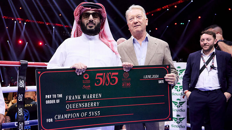 Warren’s fighters prevailed over Hearn’s rivals; and they did so by winning all 5 fights, three of them by knockout, earning Warren recognition and a prize of 3 million dollars, given by His Excellency Turki Alalshikh.