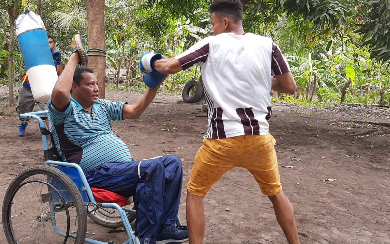 At kilometer 86 of the León-Managua road, you will find the La Chácara Region, where children and young people train at boxing and dream of being champions. Former Nicaraguan boxer Milton Ramón Carvajal Silva is the coach. Teaching boxing skills fills Milton with energy, hope and joy, because despite being in a wheelchair due to a spinal injury, he makes every effort to train his students each and every day.