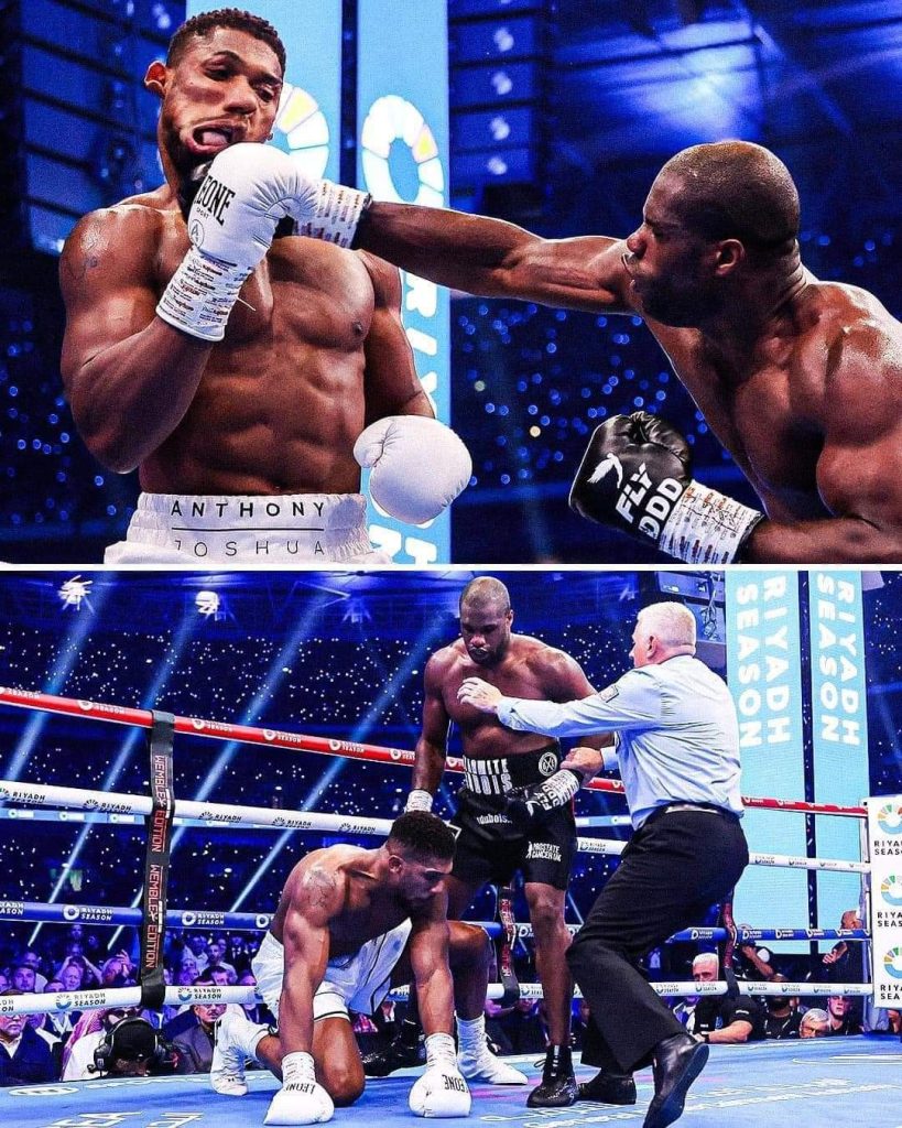 Finally, in the fifth, Joshua managed to connect a tremendous right hand that sent Dubois to the ropes, and when he tried to finish him off, they exchanged right hands and Joshua fell poleaxed.
