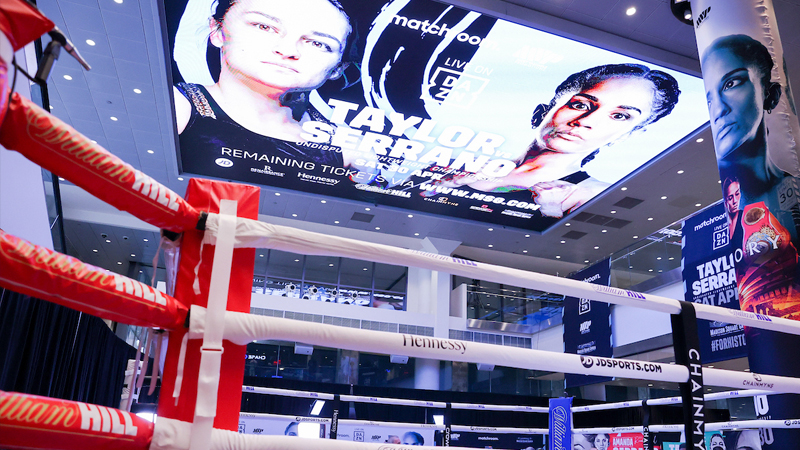 In the main event, the undisputed lightweight champion, Irish Katie Taylor, against unified featherweight world champion, The Pride of Puerto Rican Amanda Serrano.