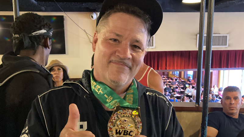 Jill Diamond presented John with. WBC champion medal from President Sulaiman. Teary eyed John said, he wished he had won it in a fight!