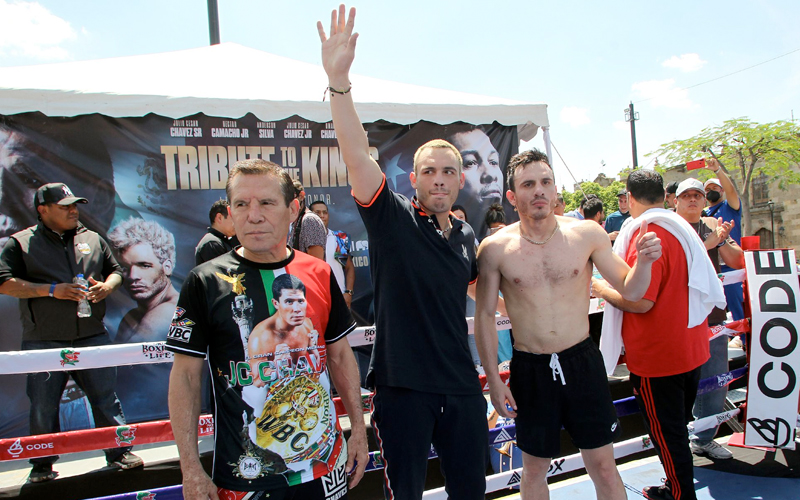 Julio Cesar Chavez, Anderson “The Spider” Silva, Ramon Alvarez, Omar Chavez, Julio Cesar Chavez Jr.and Hector Camacho Jr. attend a public workout where thousands of fans showed up at the Plaza de la Liberacion in downtown Guadalajara, Mexico on Tuesday for their upcoming exciting fights, live on PPV Saturday, June 19th in an event titled “Tribute to the Kings”.