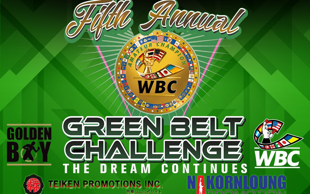 The WBC is proudly supporting the 5th Annual Green Belt Challenge in California, sanctioned by USA Boxing. Competitions will take place Thursday June 13, Friday June 14 and the final will be a very special event on Saturday June 15.