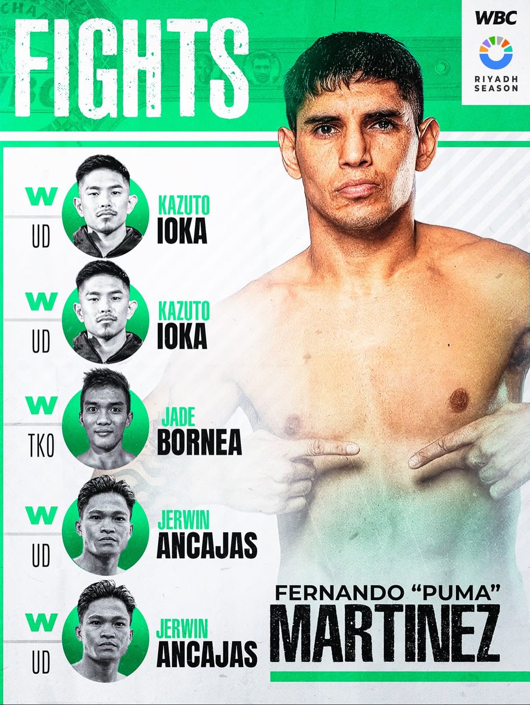 On a night to surely remember at the ANB Stadium, Riyadh, Saudi Arabia on November 22nd, Jessie 21-0. 14 KO`s will defend his WBC and WBO super-flyweight titles against WBA Champion Fernando ‘’Puma’’ Martinez 18-0, 9KO`s. It would have been for all four, but Fernando relinquished the IBF title last October, in order to fight the rematch with former WBA Champion Kazuto Ioka, once again in Tokyo, and like the first time he won by UD. Neither Jessie nor Fernando have ever known defeat as professionals, so it`s going to be a battle of pride and wills backed up by firepower for this unification.