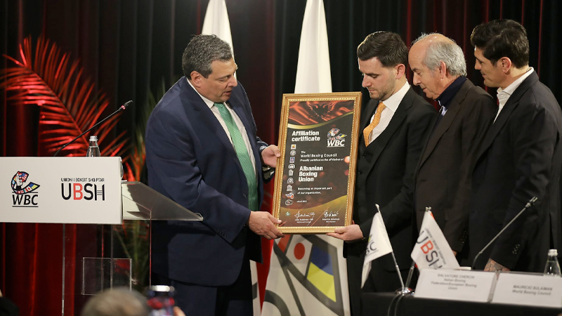 In this ceremony, the president of the Albanian Boxing Union (Albanian Boxing Union) Ilir Milan Bregasi received the certificate of affiliation of Albania from the hands of the president of the WBC, becoming the country 172, member of the Green and Gold.