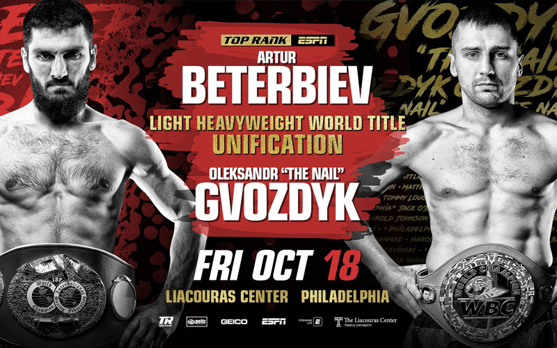 El campeón semicompleto del Consejo Mundial de Boxeo, Oleksandr ‘The Nail’ Gvozdyk y el también campeón Artur Beterbiev, pelearán en un esperado choque unificatorio el viernes 18 de octubre en el Liacouras Center de Filadelfia.