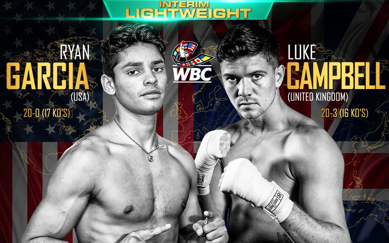 El norteamericano Ryan García (20-0, 17 ko´s), enfrentará al ex retador mundial, Luke Campbell (20-3, 16 ko´s), por el campeonato mundial interino ligero del Consejo Mundial de Boxeo.