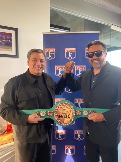 El mexicano Vinny Castilla y el venezolano estrella de los Astros de Houston, José Altuve, recibieron el cinturón de campeón dWBC en el marco de la serie de Grandes Ligas en la Ciudad de México.