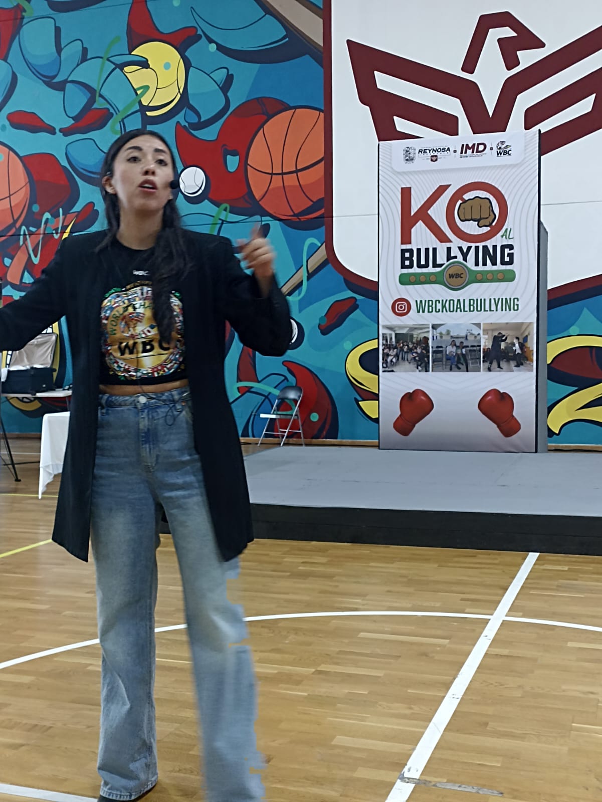 Beka Romero, embajadora contra el acoso del WBC (WBC Anti-Bullying Ambassador), conversó y escuchó a trescientos cincuenta niños en el Instituto Municipal del Deporte de Reynosa sobre un flagelo que nos afecta a todos.