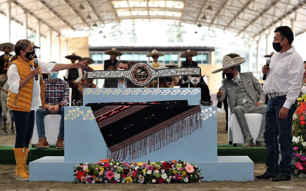 El noveno cinturón conmemorativo presentado oficialmente la semana pasada es el “Cinturón Mestizo”; una pieza elaborada por los artesanos Raúl Pérez Carmona y Vianey Rebeca Flores Martínez, de Toluca, el cual consiste en trabajo de bordado de pita en piel genuina, bordado a dos hilos y con flores en realce. Para su elaboración se requirieron de 305 horas de trabajo.