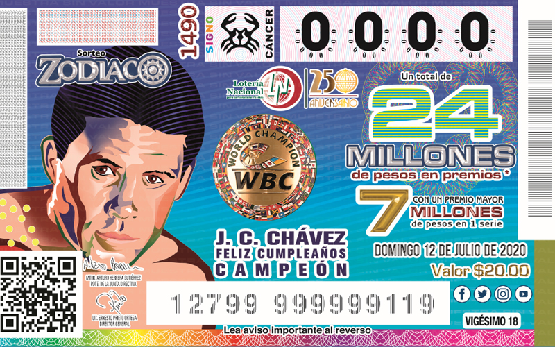 La Lotería Nacional de México frenó sus actividades tres meses y medio por la pandemia de Covid- 19, sin embargo, el 12 de julio regresará con el sorteo en homenaje a Julio César Chávez.