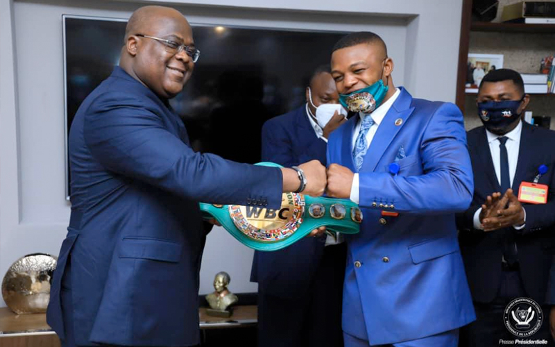 Makabu fue recibido por el Presidente de la República Democrática del Congo, Félix Tshisekedi, a quien le regaló sus guantes con los que derrotó a Durodola.