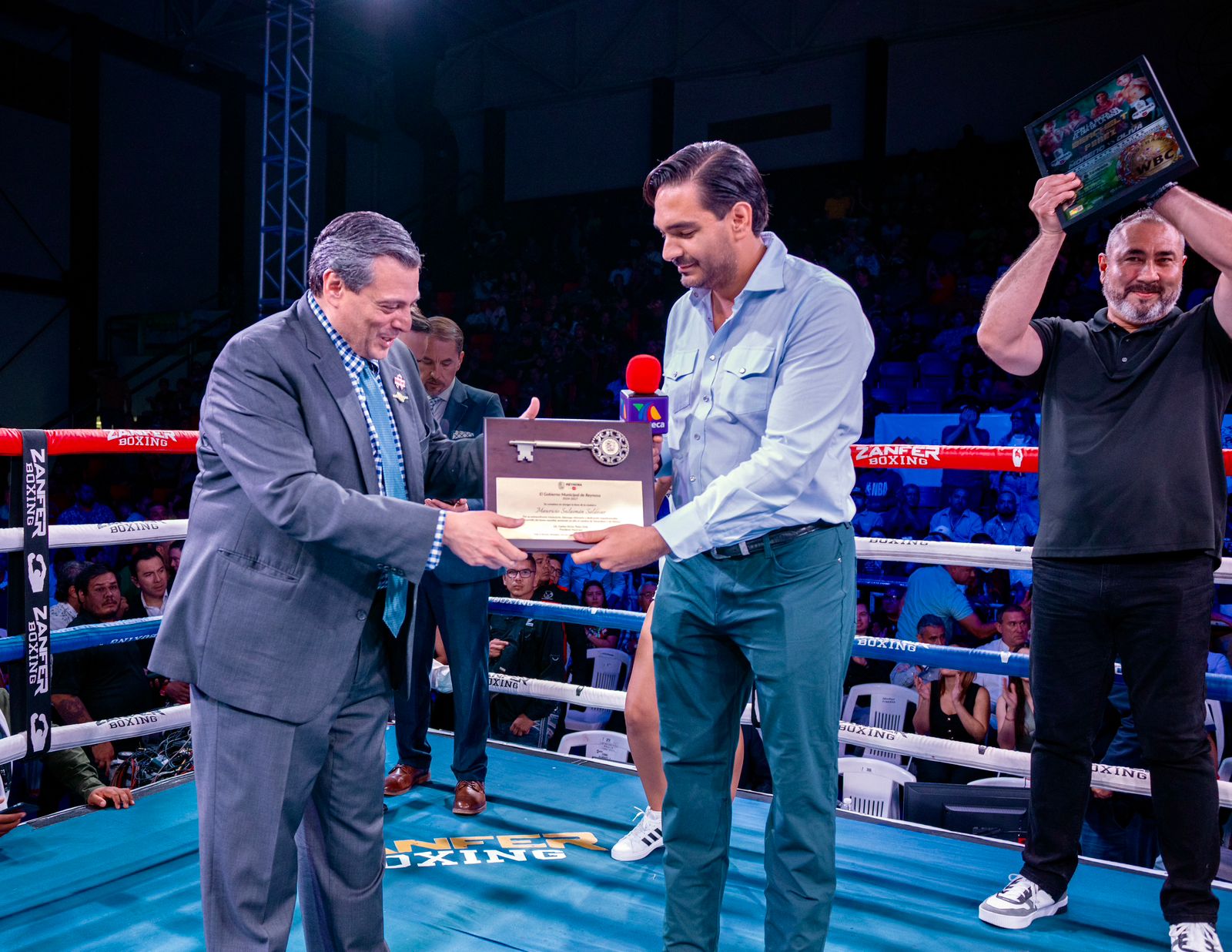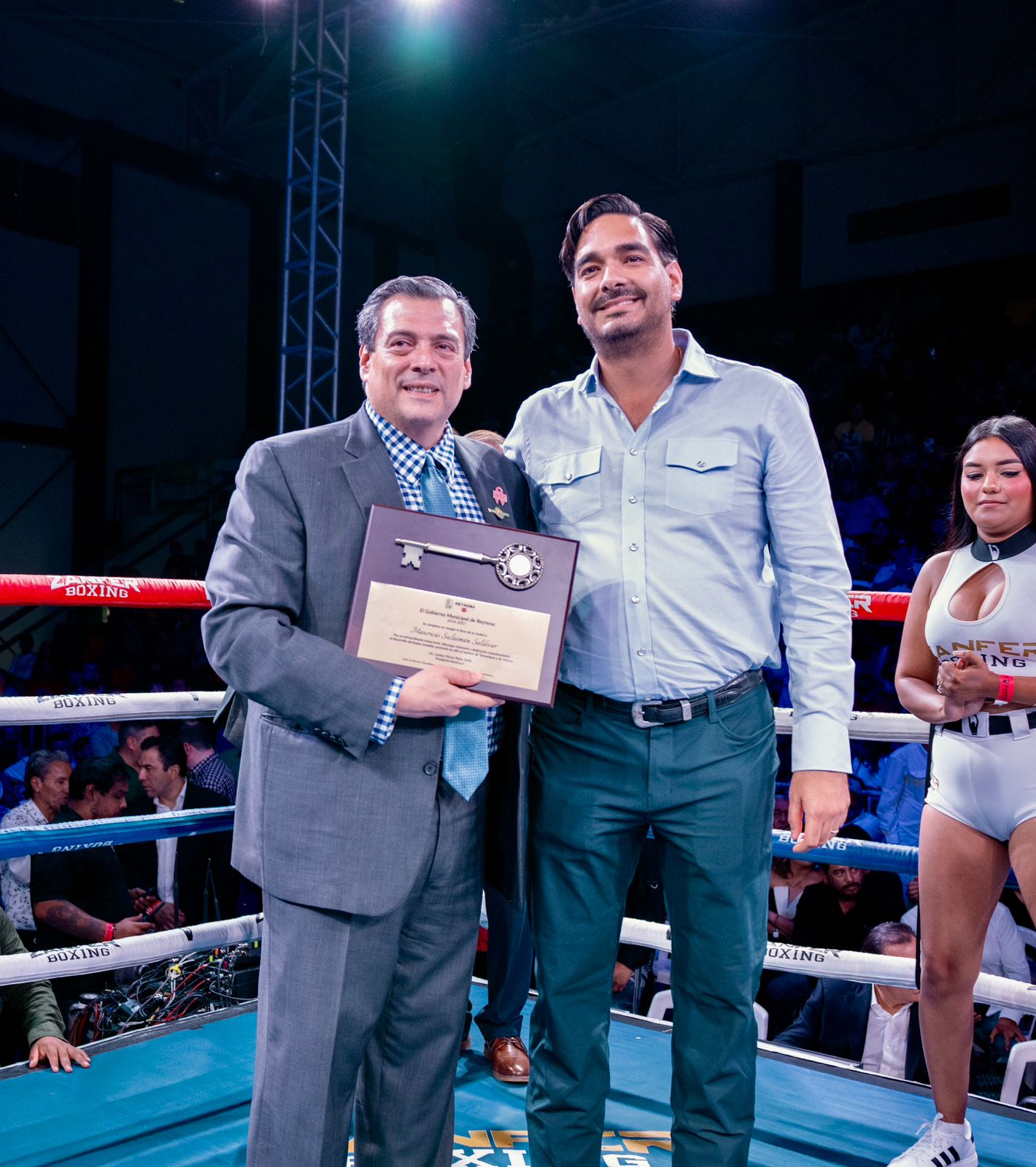 Reynosa, Tamaulipas. – En un emotivo gesto que subraya la alianza entre el deporte y el desarrollo social, Mauricio Sulaimán Saldivar, Presidente del Consejo Mundial de Boxeo, fue honrado con la entrega de las Llaves de la Ciudad de Reynosa por parte del Alcalde Carlos Peña Ortiz. Este reconocimiento se dio en el marco de la gran función de boxeo internacional que regresó la emoción del pugilismo de clase mundial a esta importante ciudad fronteriza.