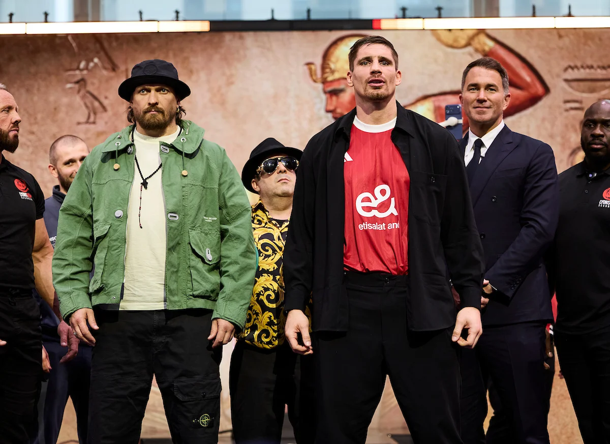 Bajo el marco de una producción icónica de Matchroom Boxing, los protagonistas se vieron las caras antes de su enfrentamiento programado para el 23 de mayo en las Pirámides de Giza, Egipto.