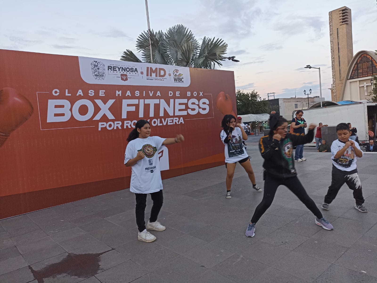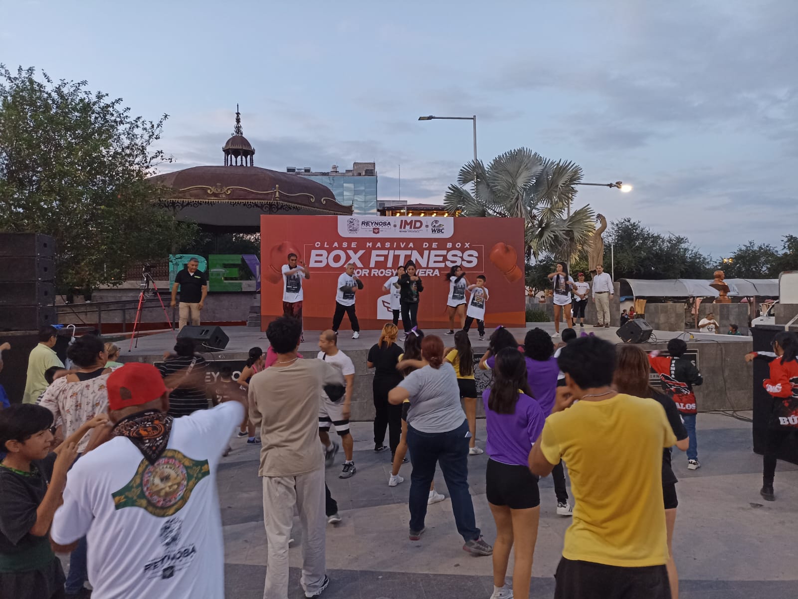 El boxeo fitness unió a niños y niñas, jóvenes y adultos que se dieron cita para aprender los golpes bajo las indicaciones de la entrenadora y ex boxeadora Rosy Olvera.