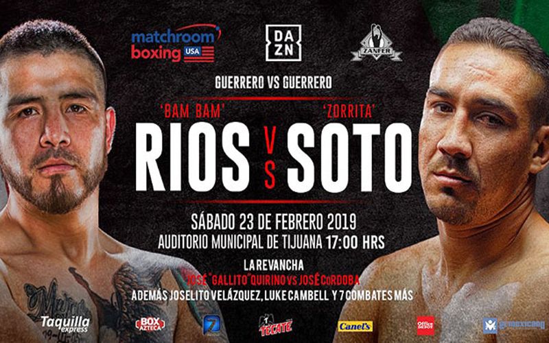 “Bam Bam” Ríos (35-4-1, 26 ko’s) y “Zorrita” Soto (68-9-2, 37 ko’s) a 12 rounds en peso Superwelter, encabezando una multiestelar función de Zanfer, Matchroom Boxing y Paco Presents, que será transmitida en vivo, en territorio mexicano, por la Casa del Boxeo, Azteca 7, y a nivel global a través de la aplicación DAZN en vivo.