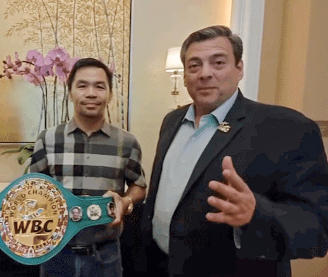 Manny me llamó para pedir la oportunidad de regresar al ring. Su deseo era ganar el Cinturón Verde y Oro y regresar a casa para retirarse como campeón del WBC. Después de pasar numerosos exámenes médicos rigurosos y exigentes y recibir una licencia de la Comisión de Boxeo de Nevada, procedimos a una votación de la junta de gobierno, y así fue como se autorizó esta pelea de campeonato.