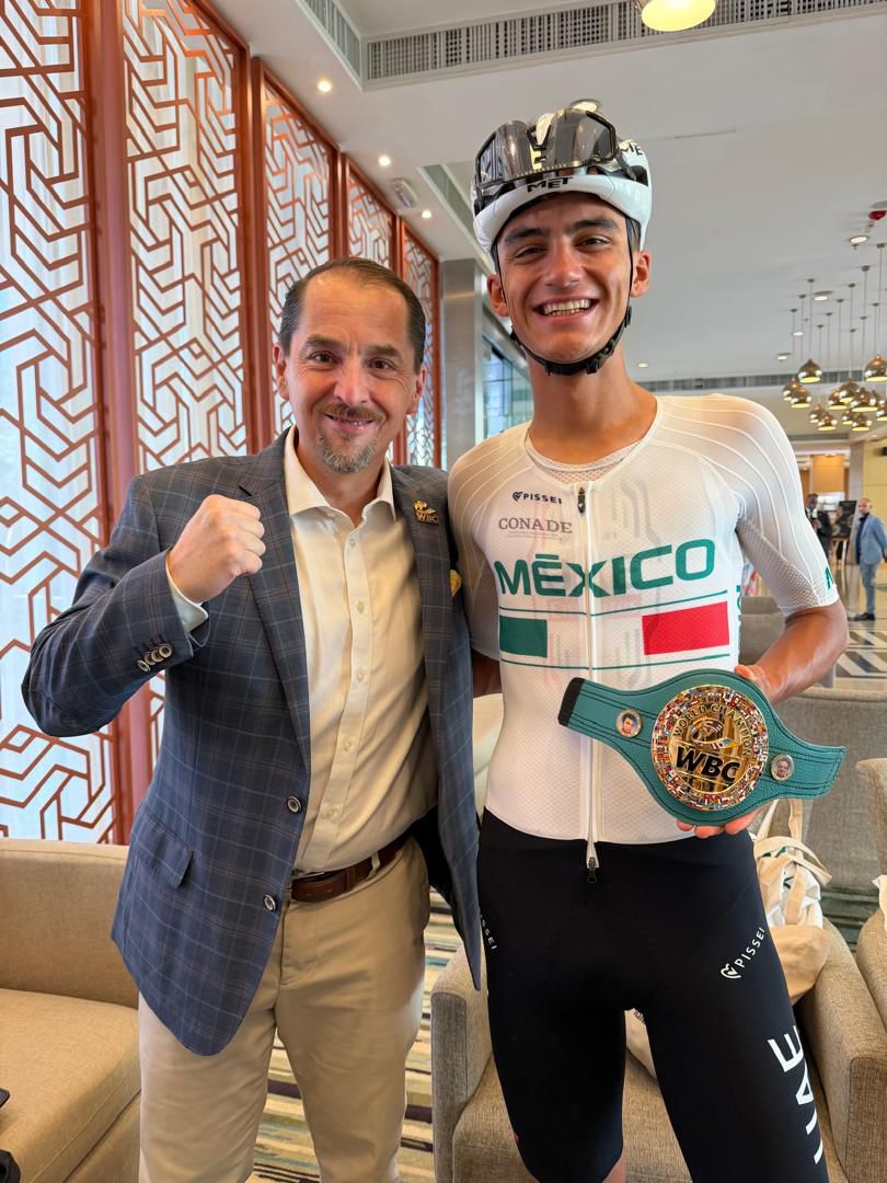 El ciclista mexicano Isaac del Toro recibió un minibelt del WBC, enviado directamente por el Presidente Mauricio Sulaimán, como un gesto de apoyo y aliento de cara a su participación en la Carrera de Ruta Élite en Kigali, Ruanda. Del Toro Romero es un ciclista mexicano nacido el 27 de noviembre de 2003, en Ensenada, Baja California. Desarrolló sus habilidades en su estado natal, corriendo para varios equipos juveniles.